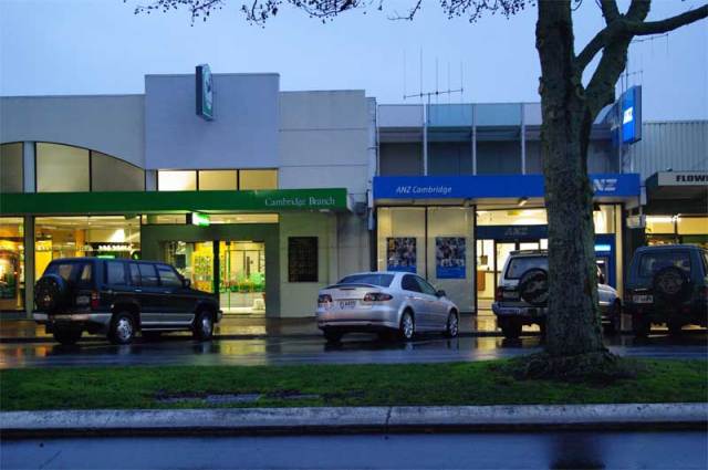 There are media reports today that ANZ National is planning to move some ‘operations’ off shore. Of the six bank branches in Cambridge five are located here on the western side of Victoria Street in the CBD or Cambridge Town Centre as I have seen it referred to in recent days.