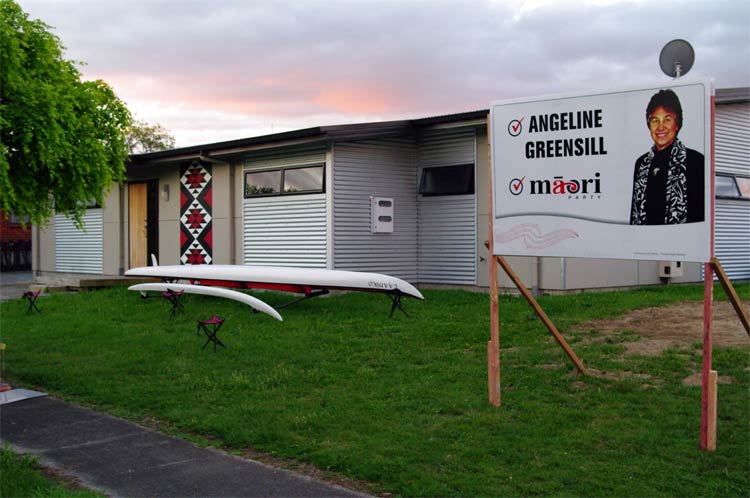 Māori Party hoarding Angeline Greensill – Māori Party hoarding – Hauraki-Waikato Māori Electorate, Shakespeare Street, Leamington, Aotearoa New Zealand.